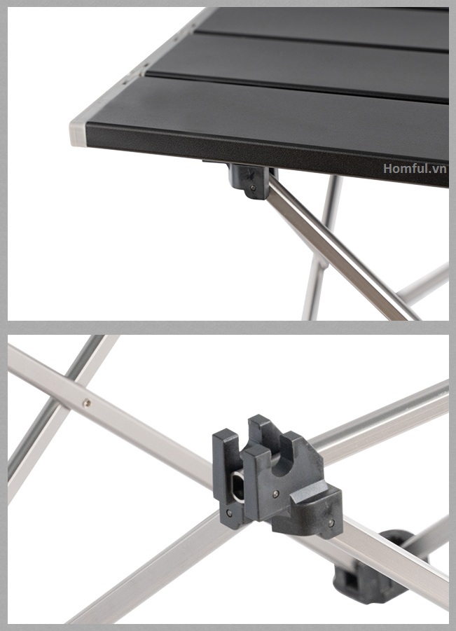 Mặt bàn, khung nhôm nhẹ và chắc chắn, không lo bị trũng khi để nặng