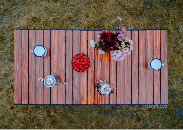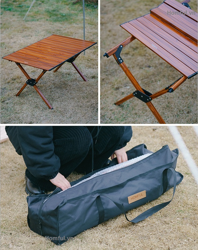 Mặt bàn, khung nhôm nhẹ và chắc chắn, không lo bị trũng khi để nặng