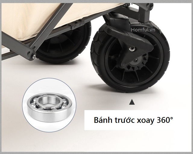 – 4 bánh xe trước xoay 360° linh hoạt, có phanh hãm